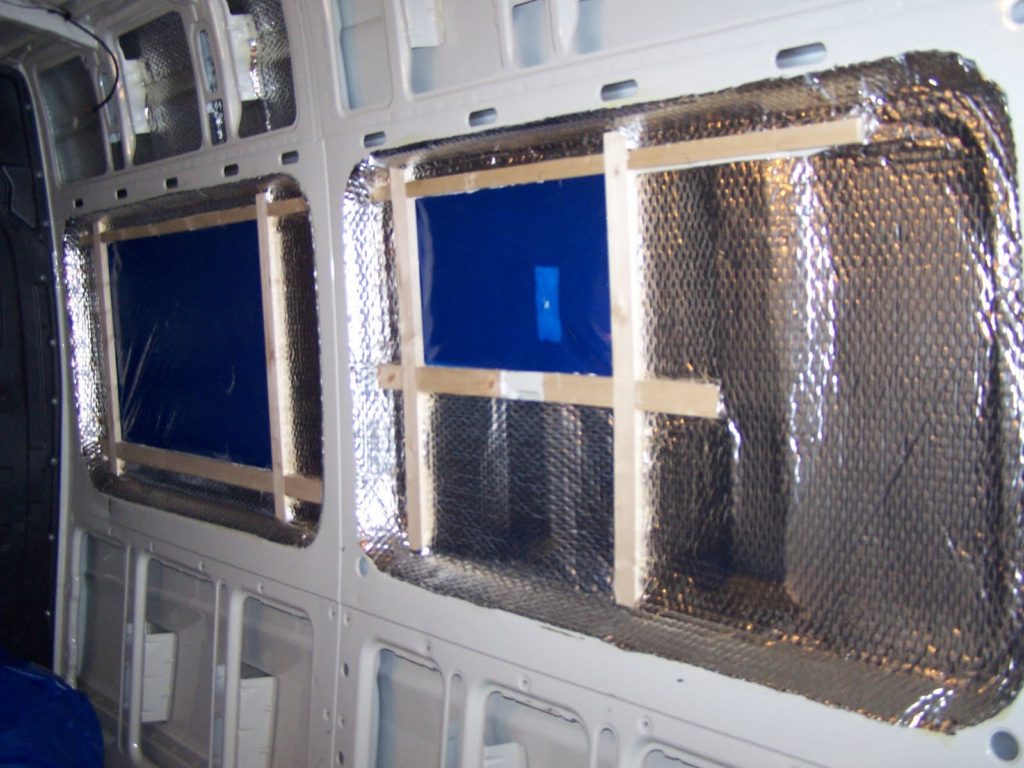 Fitting the frame was fairly quick and painless since the would had already been prepared and partially glued, and once installed I returned to work on the insulation. The first job was the insulation around the sliding door window, then the insulation around the kitchen window, with the offcuts being used to finish the panel above the seating area window.