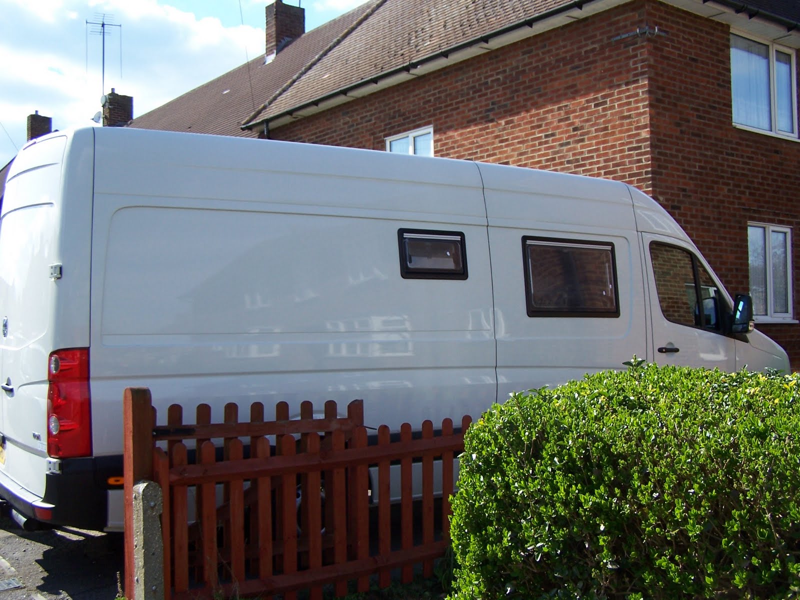 With the van full of sawdust from the routing it was time for a sweep out and a vacuum. With the floor cleared the van was pulled forward and we commenced on the windows, first it was a case of cleaning down the paint work and removing the adhesive residue from the duck tape, next the residue from the white spirit needed cleaning off then it was on with the windows. Before the outer sections were inserted a 10-15mm bead of non-setting bedding mastic was applied as indicated in the Seitz fitting instructions. With Leng holding the outer window sections in place I screwed the inners in taking care not to over tighten the screws and strip the plastic. One thing that I did notice was that as I worked around the windows the previously tight screws were loose and needed further tightening. I am assuming and hoping that this was the bedding mastic easing in under the pressure of the screws.