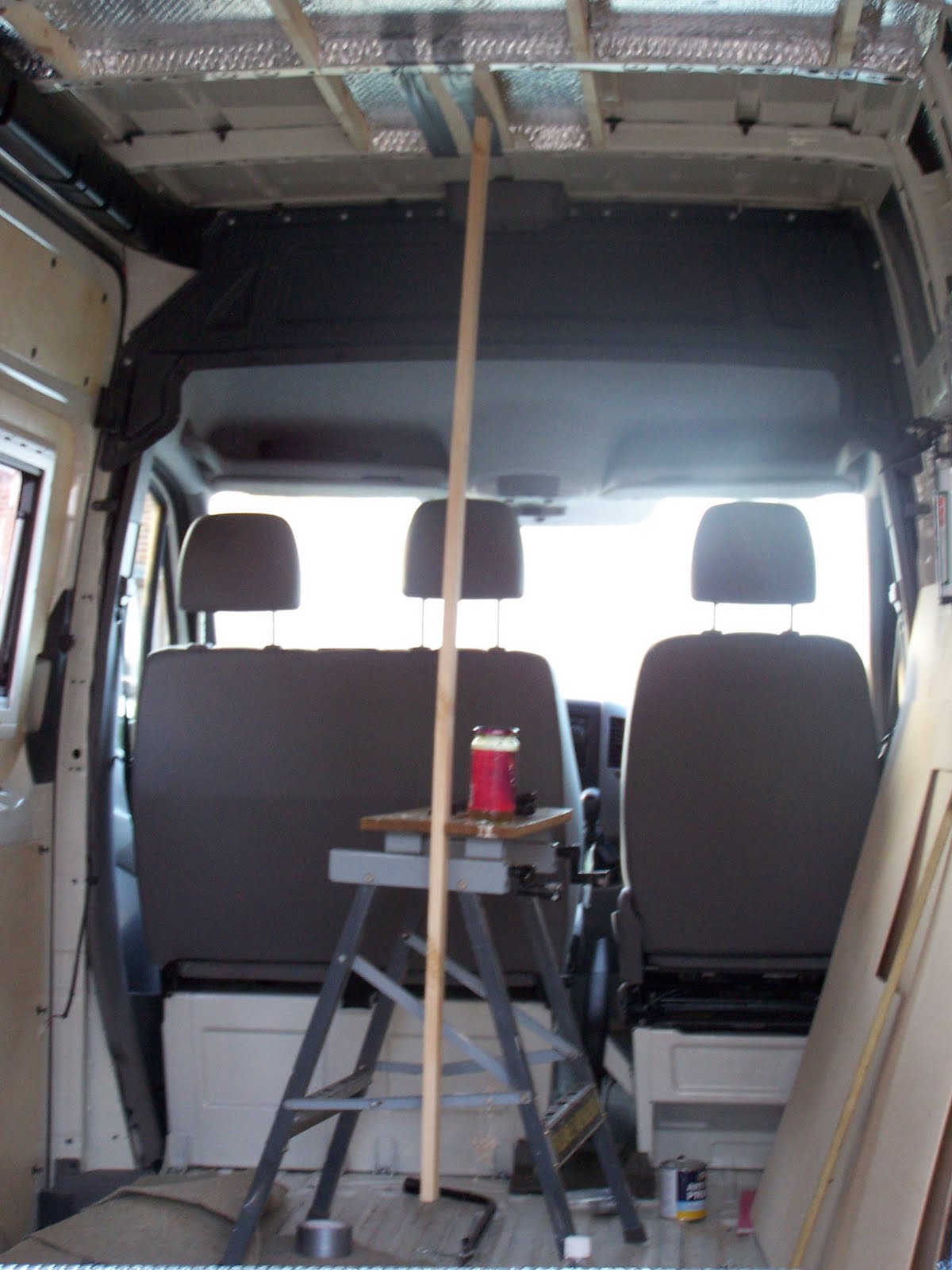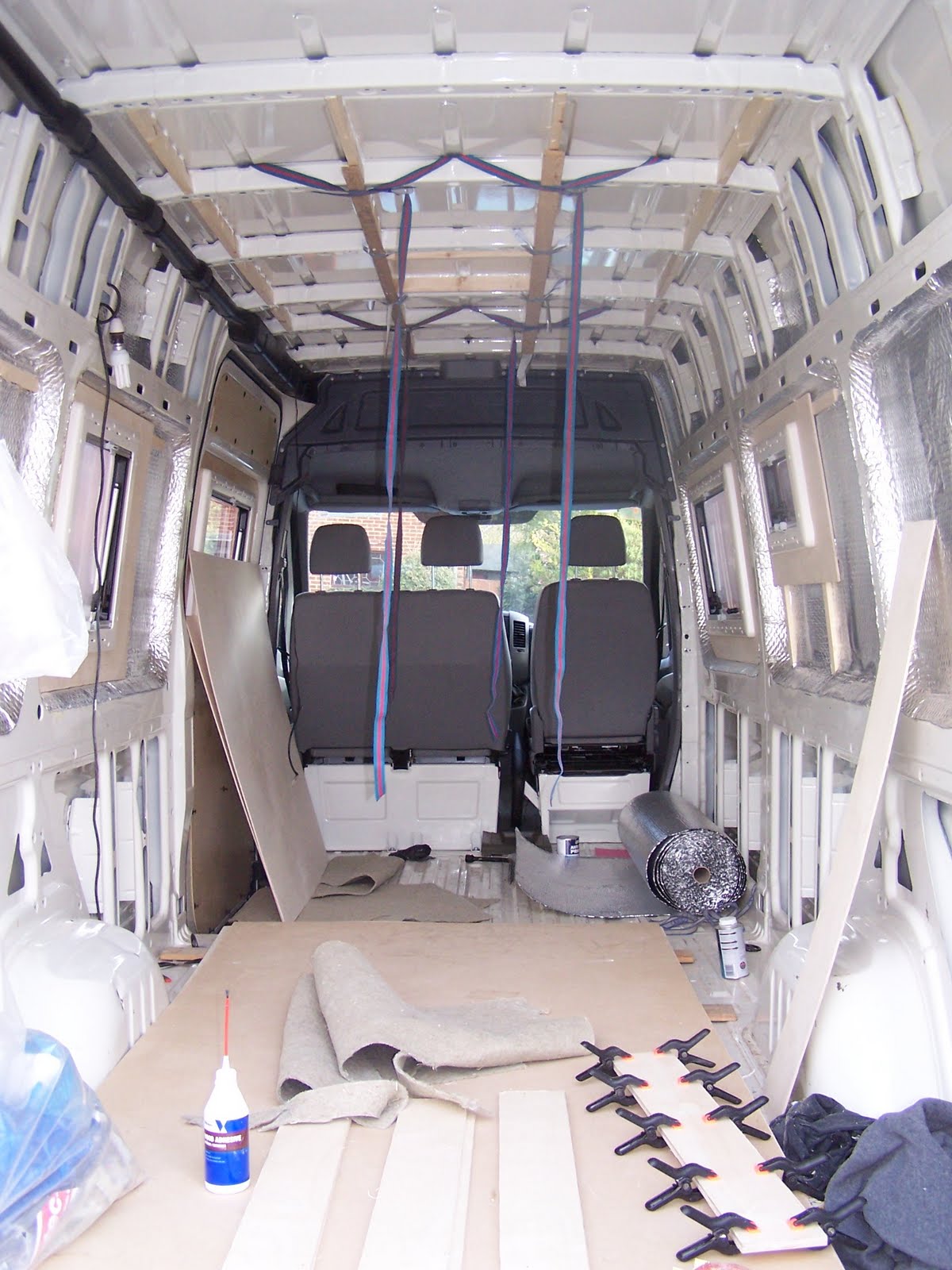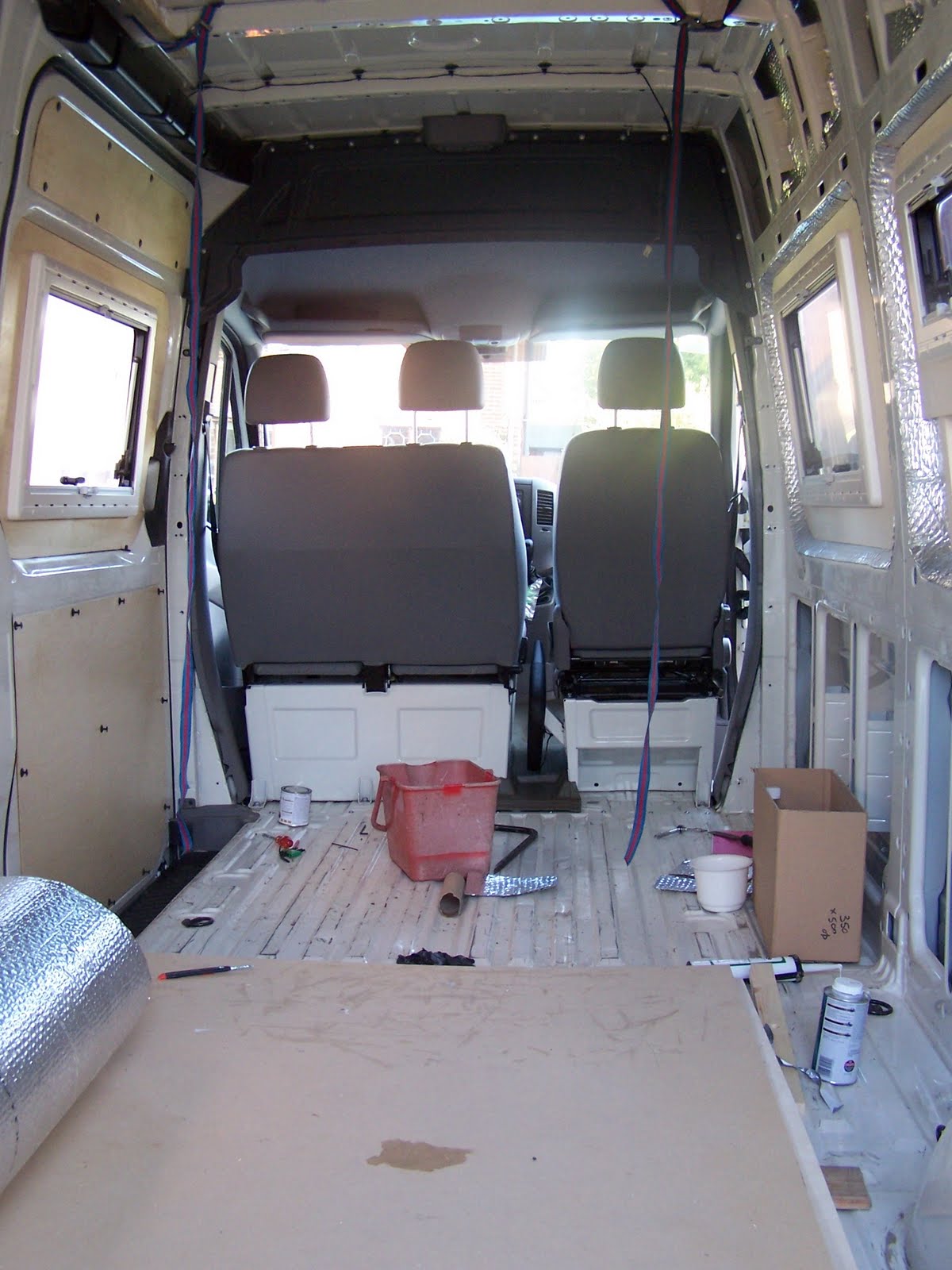 We have now have a watertight van once again as all the winows are in. The first job of the day was a final coat…