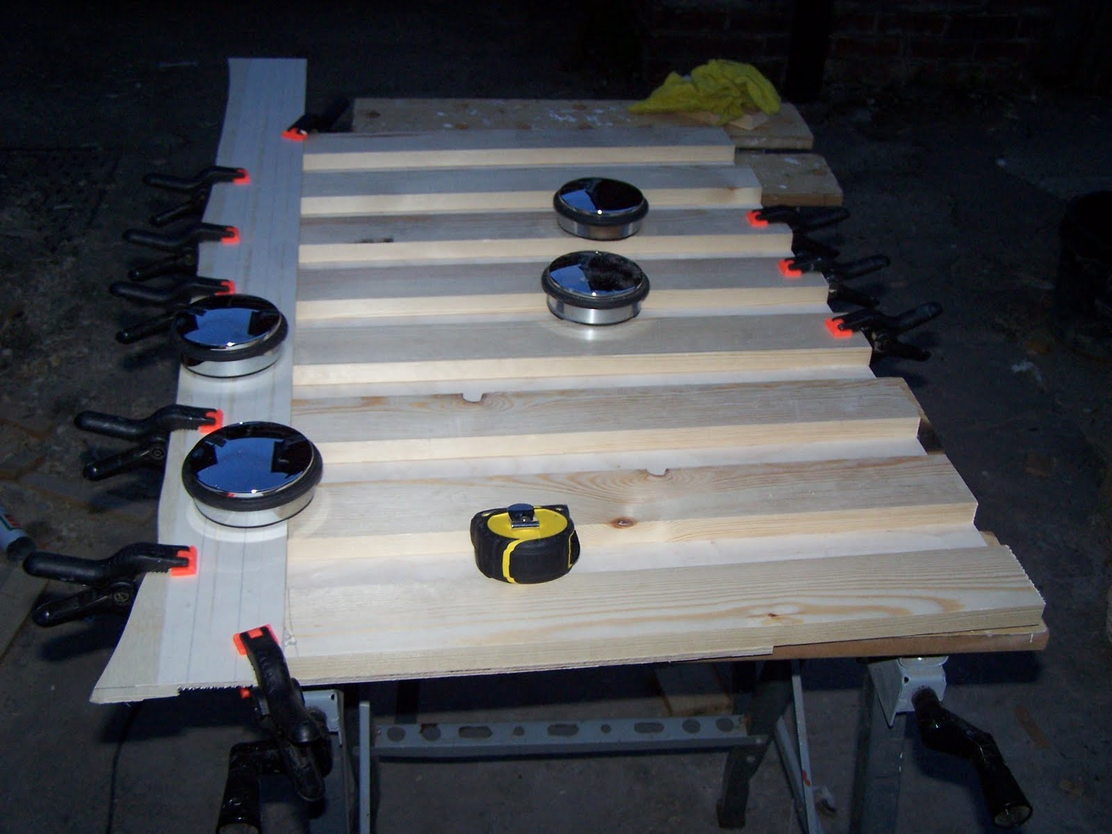 Those slats which could be screwed in place were,whilst those where the bed expands out to 122cm wide were laminated between sheets of 3mm and 6mm plywood.