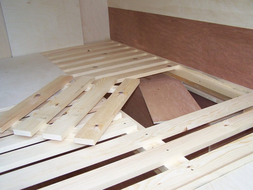 Then it was onto the slats, the ones that I was short of were cut and then the complete set were screwed down. In fitting the slats I incorporated a hatch to allow access to the gas fill hose.