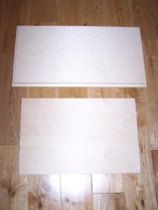 It being Mother’s’ Day I was only afforded a short time working on the van. In fact I didn’t do anything in the van rather I got the fronts cut for the cupboard doors first thing then surreptitiously through the afternoon I got the fronts adhered to the frames I adhered to the backs yesterday. So I now have a complete set of cabinet doors ready to varnish and fit next week.