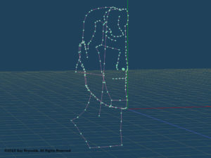 With Batman having proven to be a stable flyer, all be it that his ankles have a habit of winding up, his body makes an ideal base for various superheros, thus I am working up a design for a male head. After a couple of evenings sketching and then plotting points in Metasequoia I have the start of a recognisably male wire frame model.