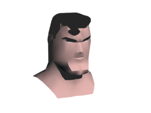 The first pass on the head left me with just the right-hand half of the head consisting of 394 polygonal faces, or 788 for the complete head; way to many to pass on to Pepakura to make a pattern. The next step was therefore to optimise the design by manually reducing the number of polygons thereby reducing the detail whilst at the same time retaining the intrinsic shape of the head.
