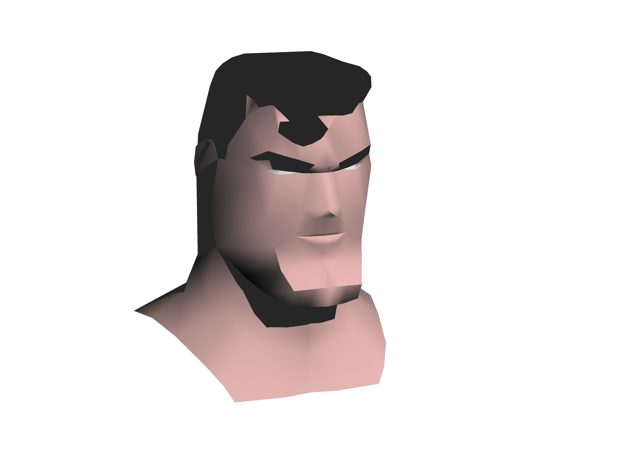 A couple hours later and the right-hand half of the head had been reduced to 165 polygons. This done, the half head was mirrored to form a full head which was further optimised to give 316 polygons for the whole head.