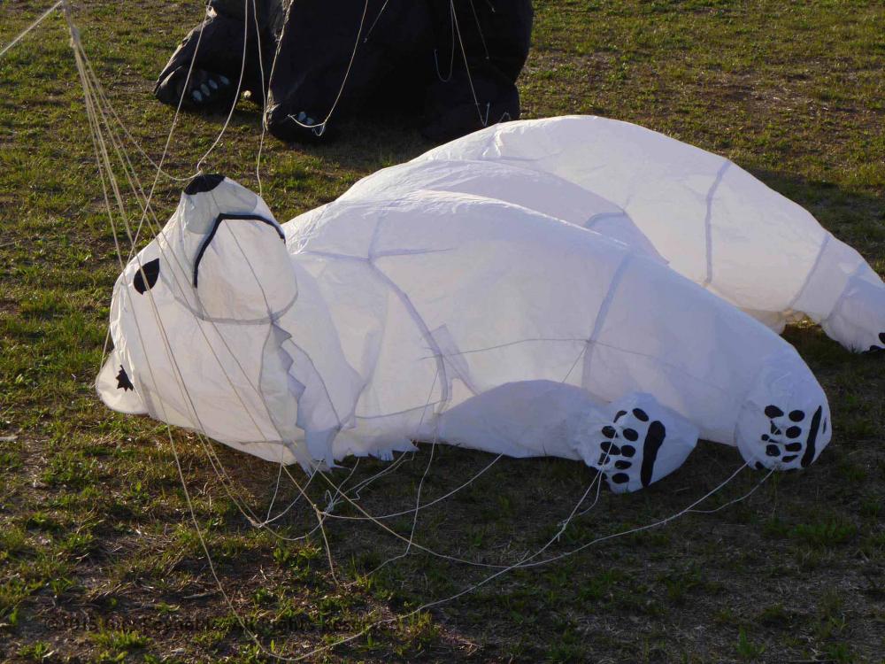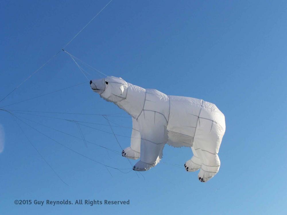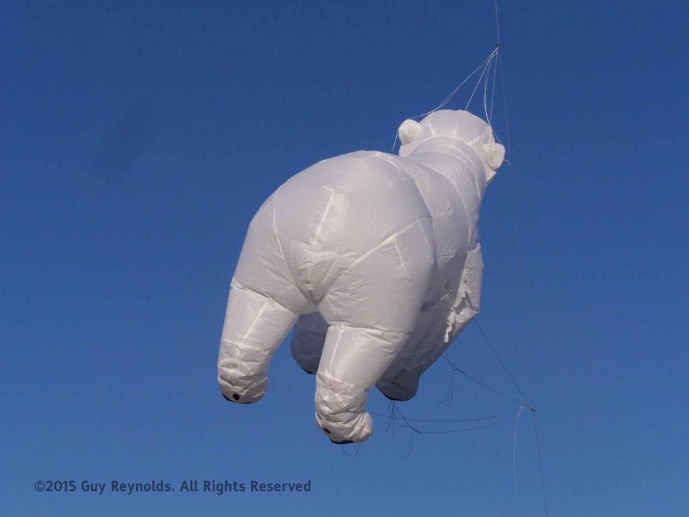 Born out of a discussion at 2009 Portsmouth Kite Festival Nanuq is a near life size Polar Bear inflatable to fly from your kite line.